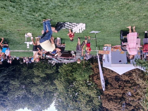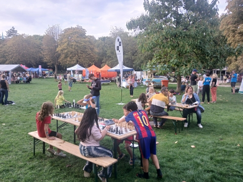 Auch dieses Jahr präsentierten wir uns openair, d.h. alles ohne Zelt. Mit dem Terrassenschachspiel und dem Übungsmaterial mit viel Infozetteln.